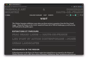We developed this website for the art & industry triennial in Dunkirk 2023 after being selected to produce something that responded to the theme of the art festival “to observe and understand energy activities and environmental upheaval, and the way in which they affect art”. By allowing the viewer to toggle between high and low definition images, and light and dark, the work made the audience aware of the physical impact on energy consumption and the climate our digital lives have. Designed with In the shade of a tree