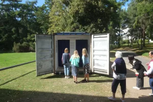 Octopus Container is an immersive art installation about the dying seas, installed outside the Sainsbury Centre for Visual Arts, Norwich. The artwork was inaugurated for the Tyndall Centre’s Critical Decade for Climate Action Conference in September 2025.